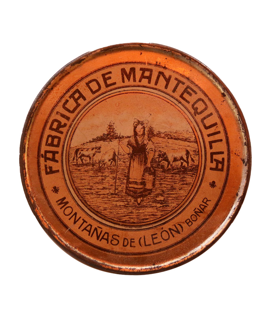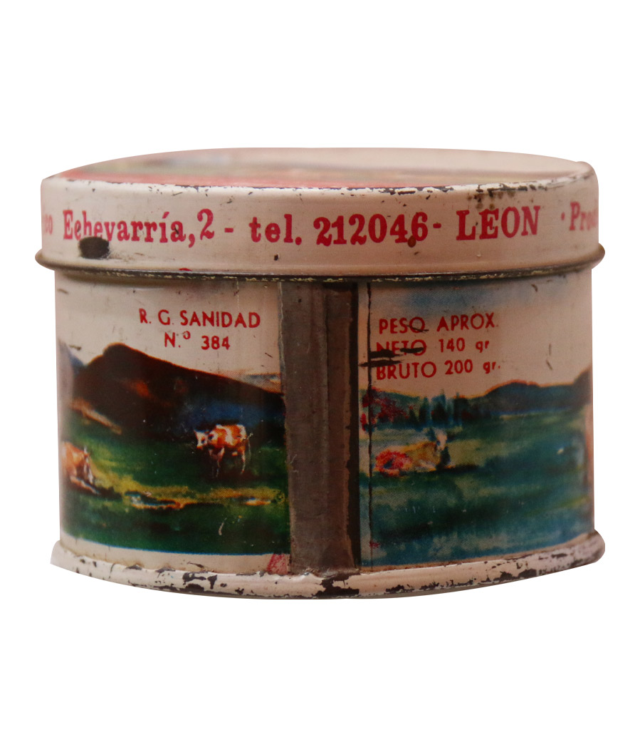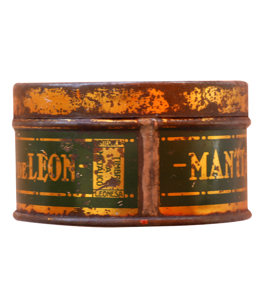 | C008 | Caja metalica | MANTECA DE VACA DE LAS MONTAÑAS DE LEON. CALIDAD SELECTA. Mantequera Leonesa. Tapa verde. | | León | |