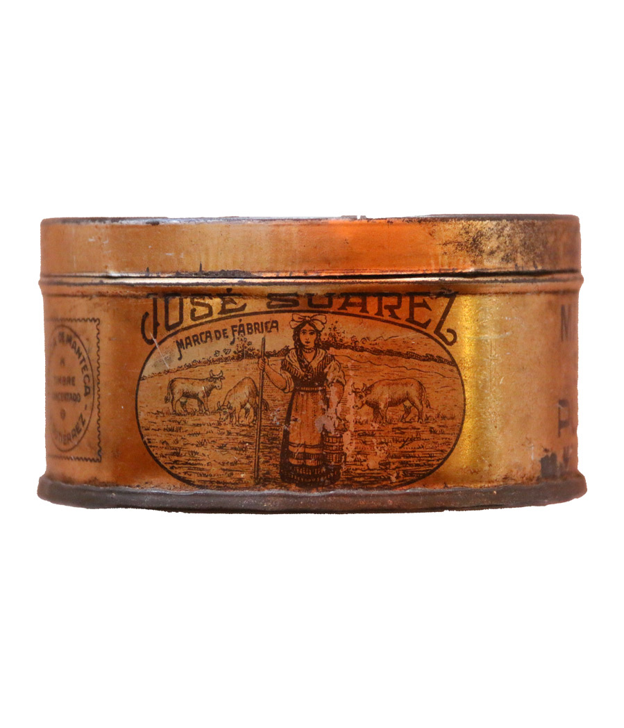 | C007 | Caja metalica | MANTEQUILLA JOSE SUAREZ. MONTAÑAS DE (LEON) BOÑAR. Mantequilla selecta pura de vaca. Fabrica de Manteca V. Gutierrez. | | Boñar | |