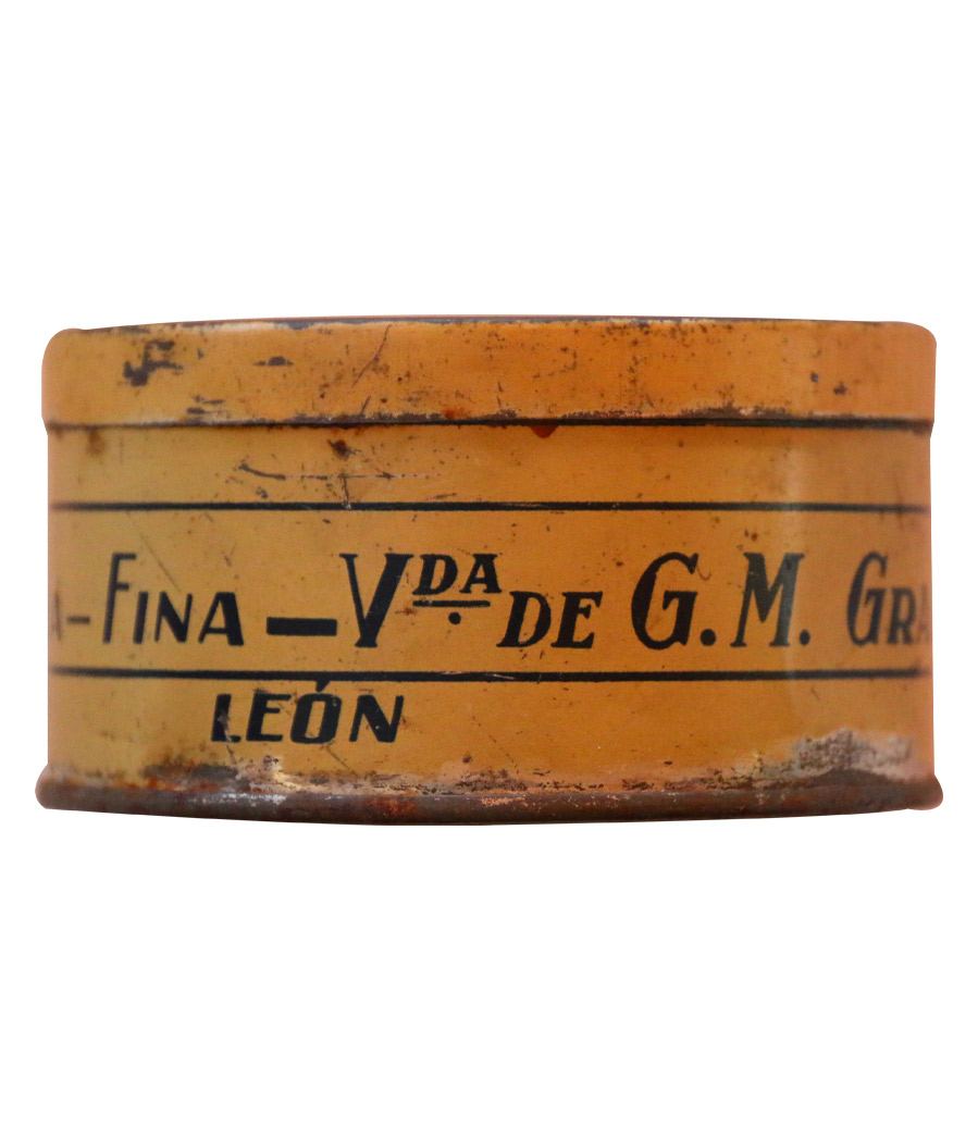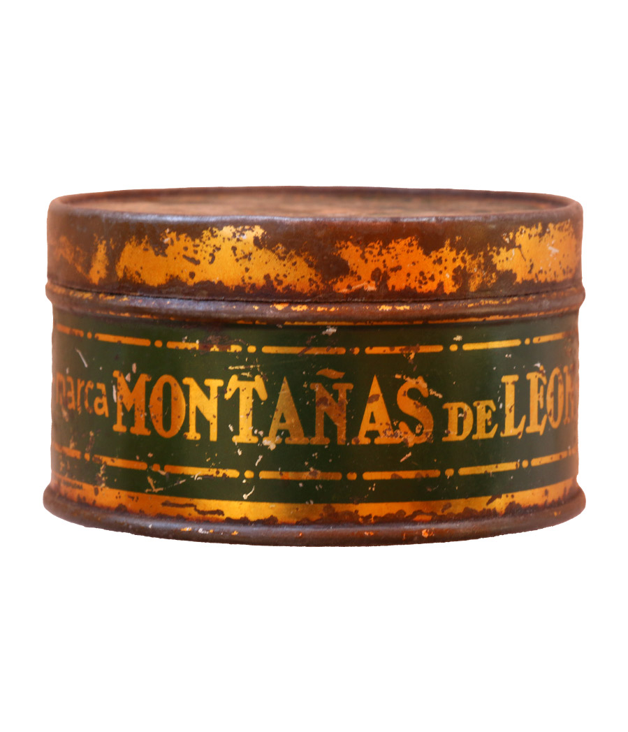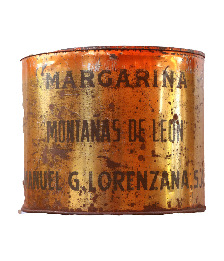| C010 | Caja metalica | Bote metálico, MARGARINA MONTAÑAS DE LEON. MANUEL G LORENZANA S.A. 5 kg. Tapa artesana metálica con asa añadida. | | León | |