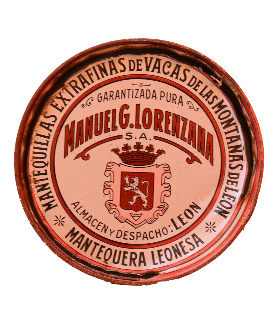 | C011 | Caja metalica | MANTEQUILLAS EXTRAFINAS DE VACAS DE LAS MONTAÑAS DE LEON. Garantizada Pura. Manuel G Lorenzana S.A. Mantequera Leonesa. Sin base. | | León | |