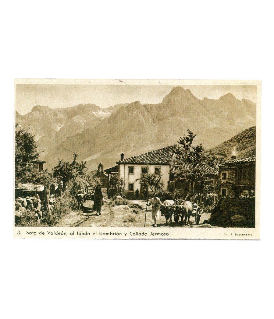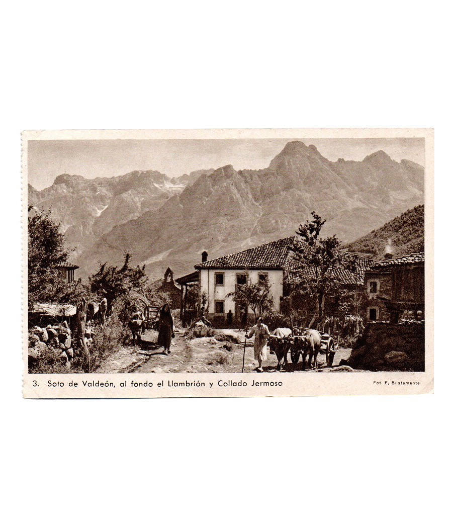 | C034 | Postal | POSTAL SIN CIRCULAR. SOTO DE VALDEON, AL FONDO EL LLAMBRION Y COLLADO JERMOSO. Fot. E.Bustamante. Ed. Huecograbado Rieusset, s.a. Barcelona. | | Valdeón, León | |