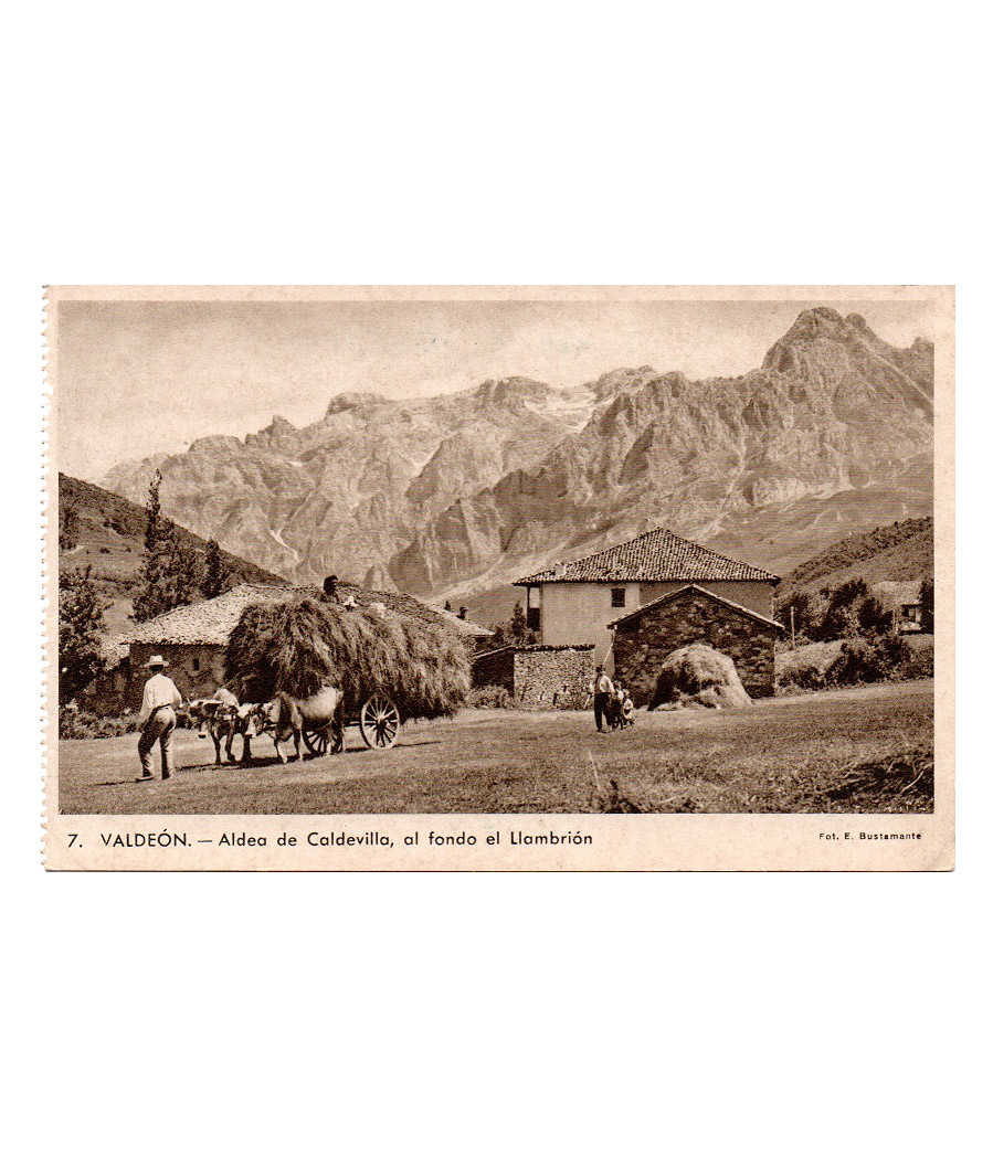 | C035 | Postal | POSTAL SIN CIRCULAR. ALDEA DE CALDEVILLA, AL FONDO EL LLAMBRION. Fot. E.Bustamante. Ed. Huecograbado Rieusset, s.a. Barcelona. | | Valdeón, León | |