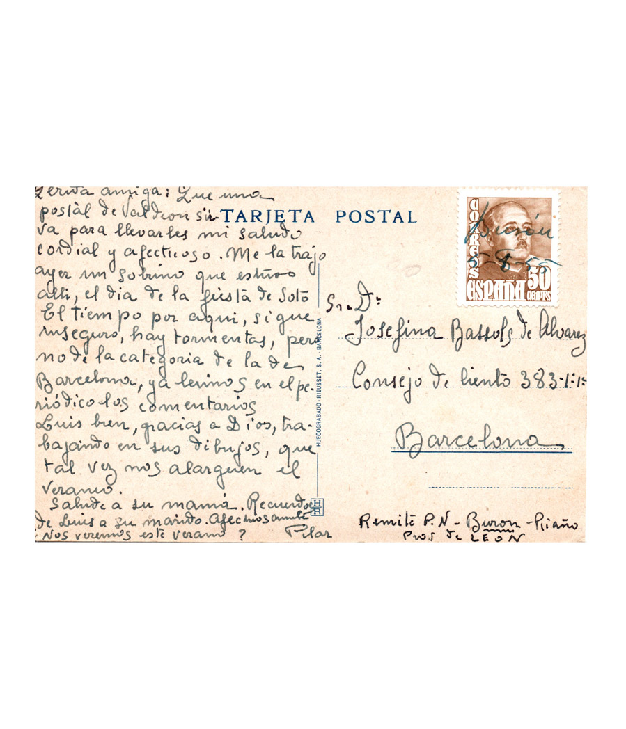 | C093 | Postal | POSTAL CIRCULADA. VALDEON. Aldea de Capdevilla_al fondo el Llambbrion_ Fot_E_Bustamante_Huecograbado Rieusset_SA_Barcelona_Criculada_1955_05_08. | 1955 | Valdeón (León) | |