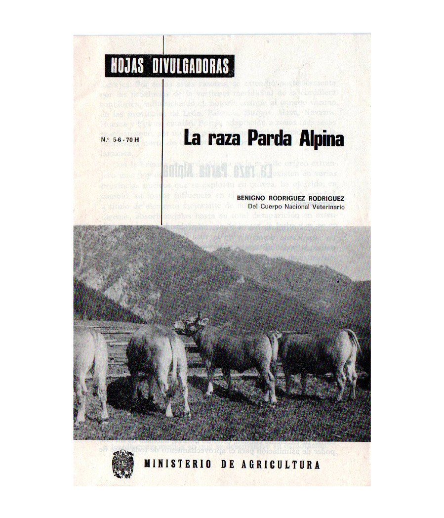 | C095 | Publicación | Publicación, LA RAZA PARDA ALPINA. Benigno Rodriguez Rodriguez. Hojas divulgadoras. Ministerio de Agricultura. | 1979 | Madrid | |