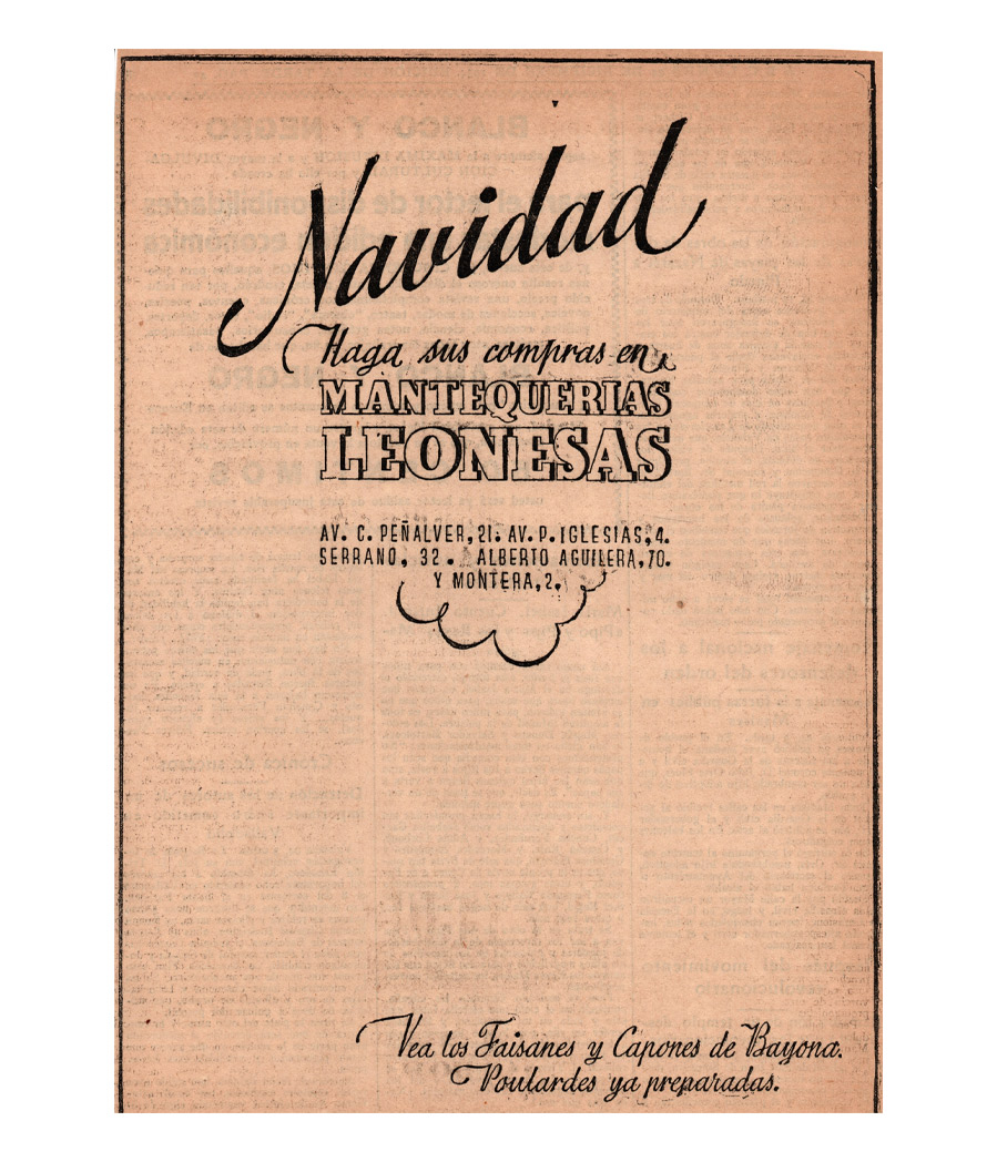 | C142 | Publicación | Recorte prensa, MANTEQUERIAS LEONESAS. Navidad. 1946 | 1946 | Madrid | | | |