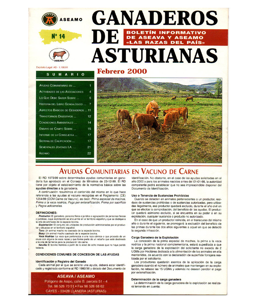| C103 | Publicación | Publicación, GANADEROS DE ASTURIAS. Boletín Nº 14. ASEAVA / ASEMO. | 2000 | Asturias | |