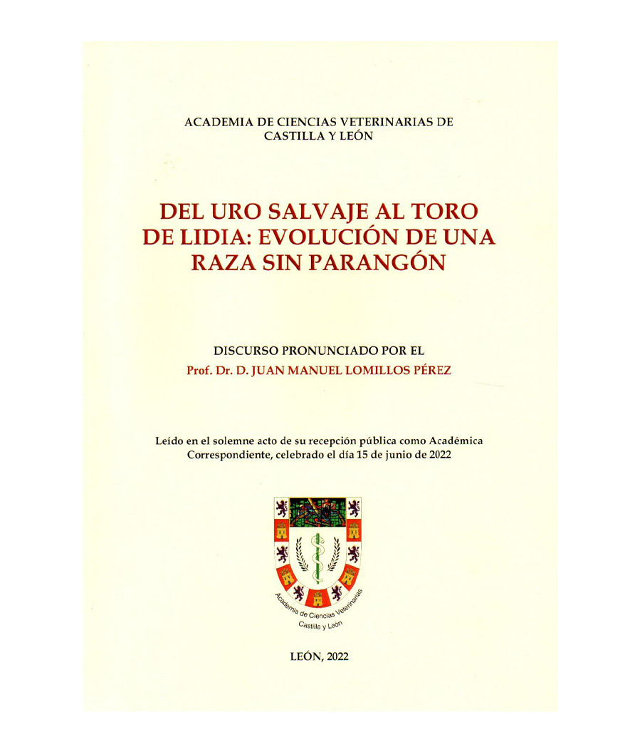 | C109 | Publicación | Publicación, DEL URO SALVAJE AL TORO DE LIDIA.EVOLUCIÓN DE UNA RAZA SIN PARANGÓN. Juan manuel Lomillos Pérez. Academia de Ciencias Veterinarias de Castilla y León. | 2022_06_15 | León | |