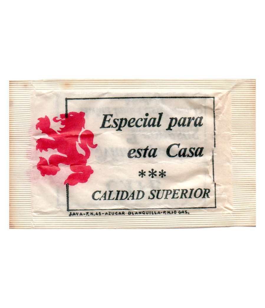 | C116 | Objeto Promocional | Sobrecillo azucar_10 g._mod_4_Avda. Llano castellano, 15_MADRID. JAVA- Fte. 29/006-R.S.I. 23668/M - Azucar blanq- P N 10 grs. | | Madrid | |