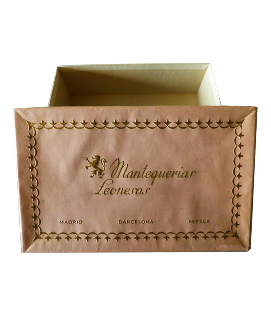 | C005 | Caja cartón | MANTEQUERIAS LEONESAS. Caja blanca con tapa. Tipografía "madrid" pequeña. | | | |