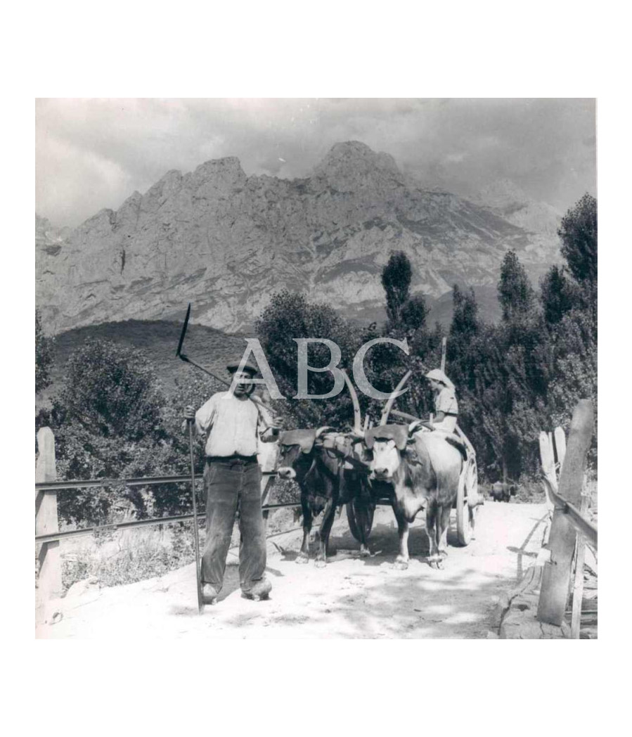 X 14 ABC PICOS DE EUROPA Valle de Valdeón, Valdeonés con su carro, al pie de Torre Friero
