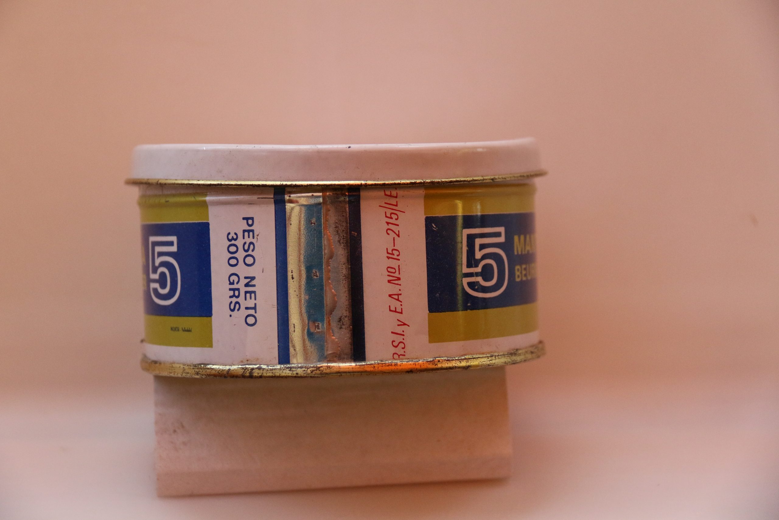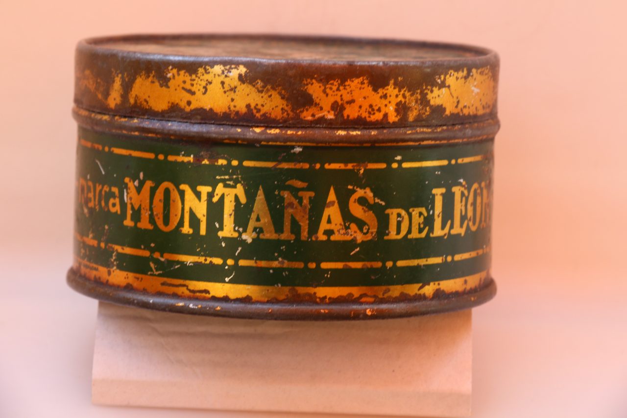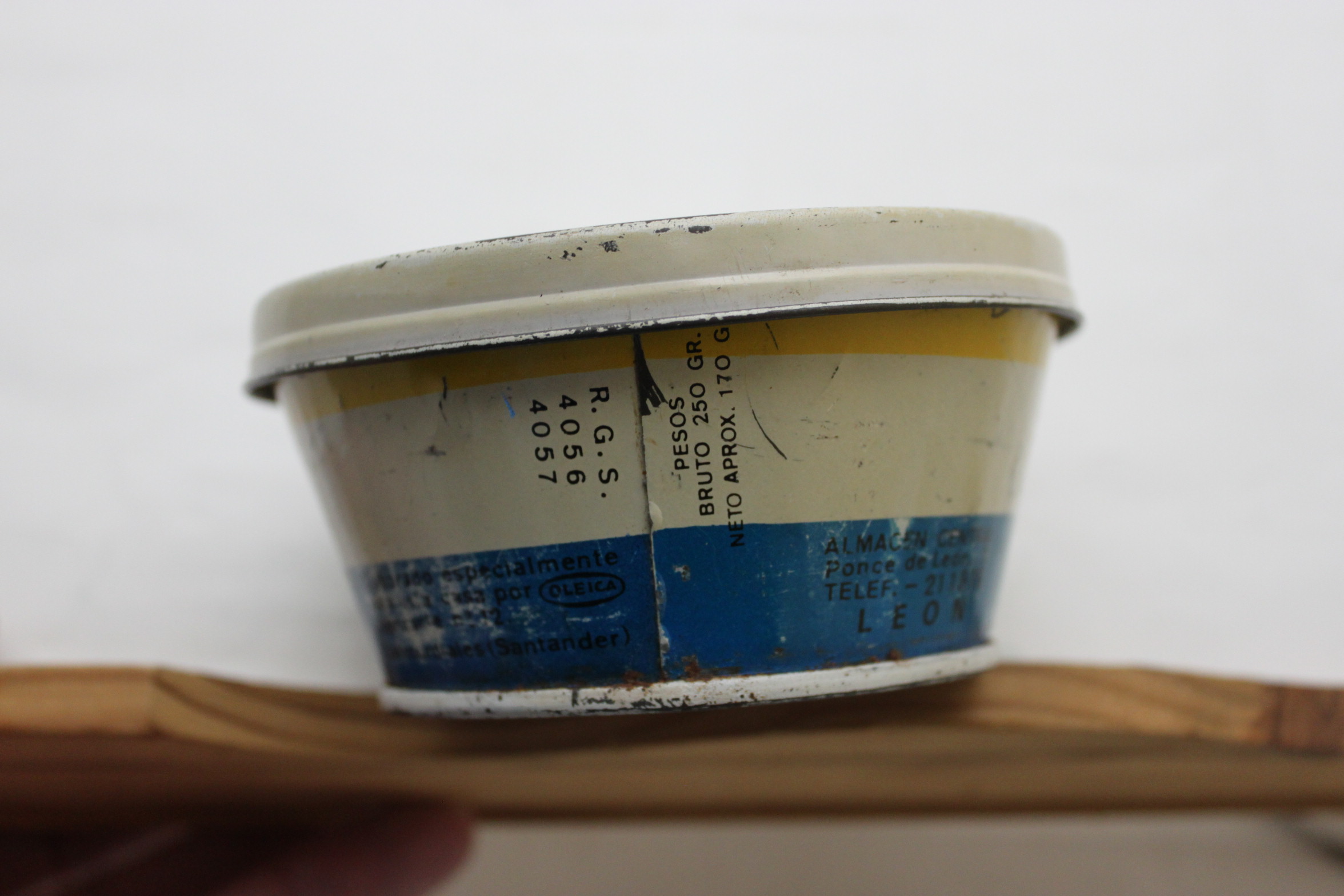 C010Bote metálico, MARGARINA MONTAÑAS DE LEON. MANUEL G LORENZANA S.A. 5 kg. Tapa artesana metálica con asa añadida.s/dLeón