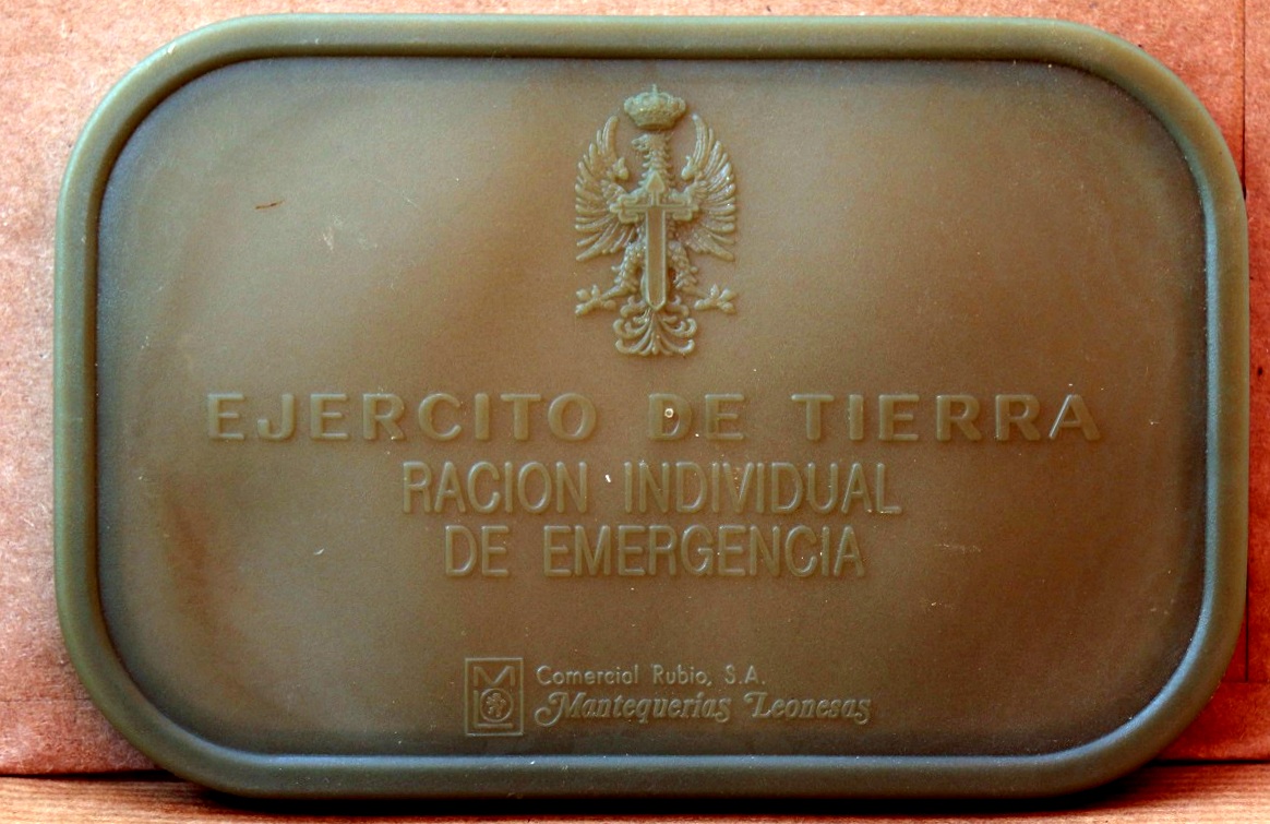 C012RACION INDIVIDUAL DE EMERGENCIA. EJERCITO DE TIERRA. MANTEQUERIAS LEONESAS. Comercial Rubio S.A. Distribuidor adjudicatario. Tapa plasticaAnt. 1995Madrid