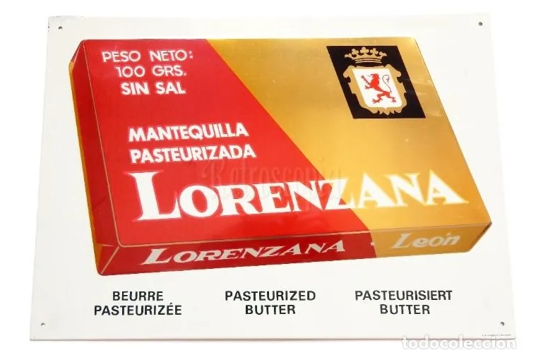 C017MANTEQUILLA LORENZANA. PASTEURIZADA SIN SAL. Cartel metálico.s/dLeón