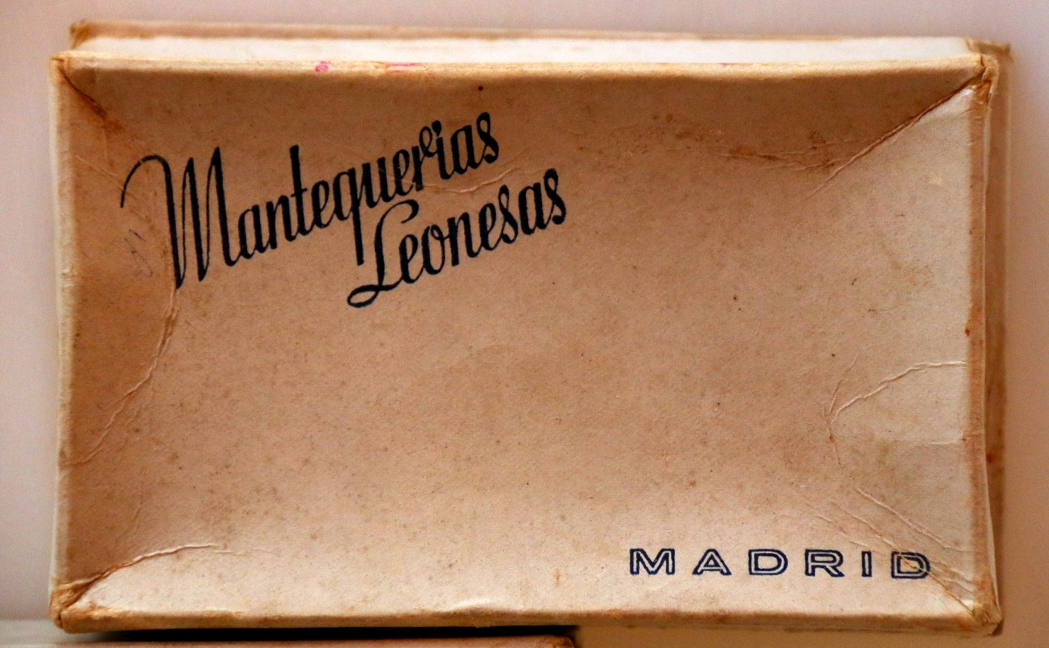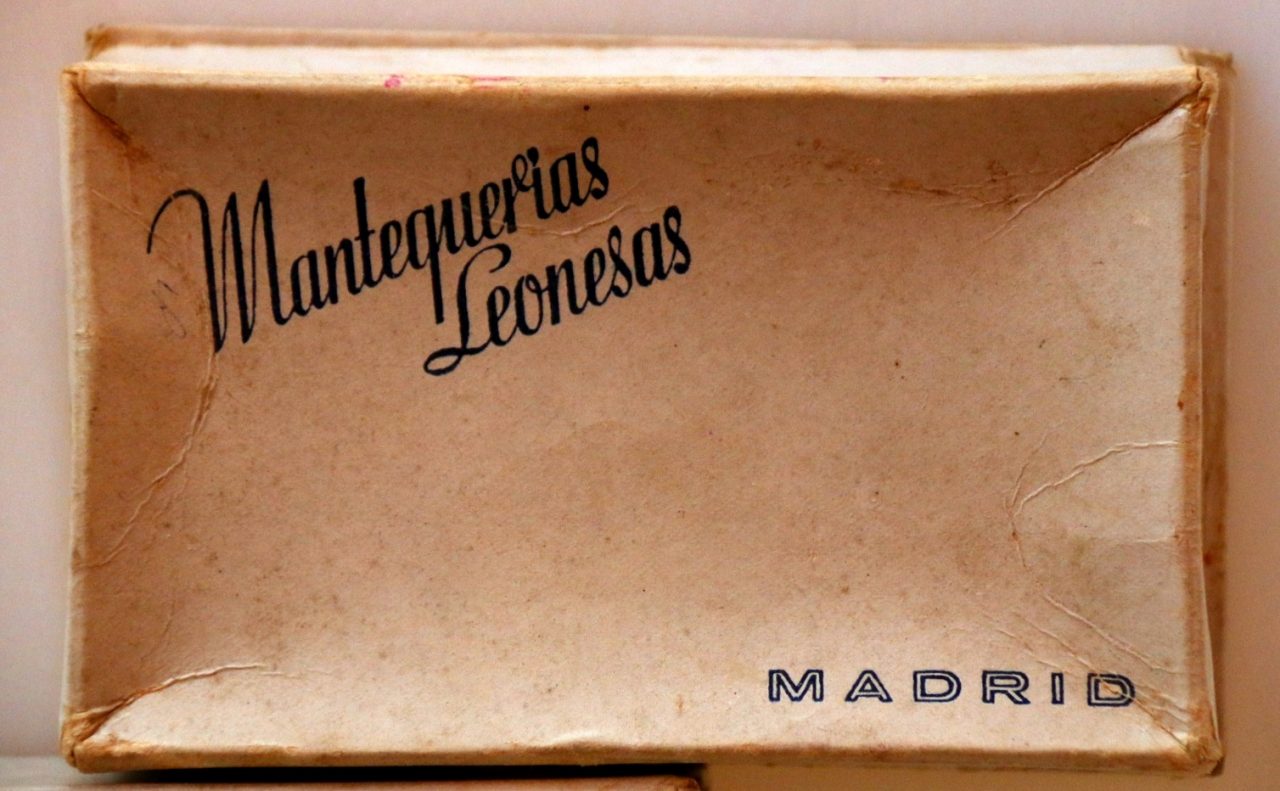 C005MANTEQUERIAS LEONESAS. Caja blanca con tapa. Tipografía «madrid» pequeña.s/dS/D