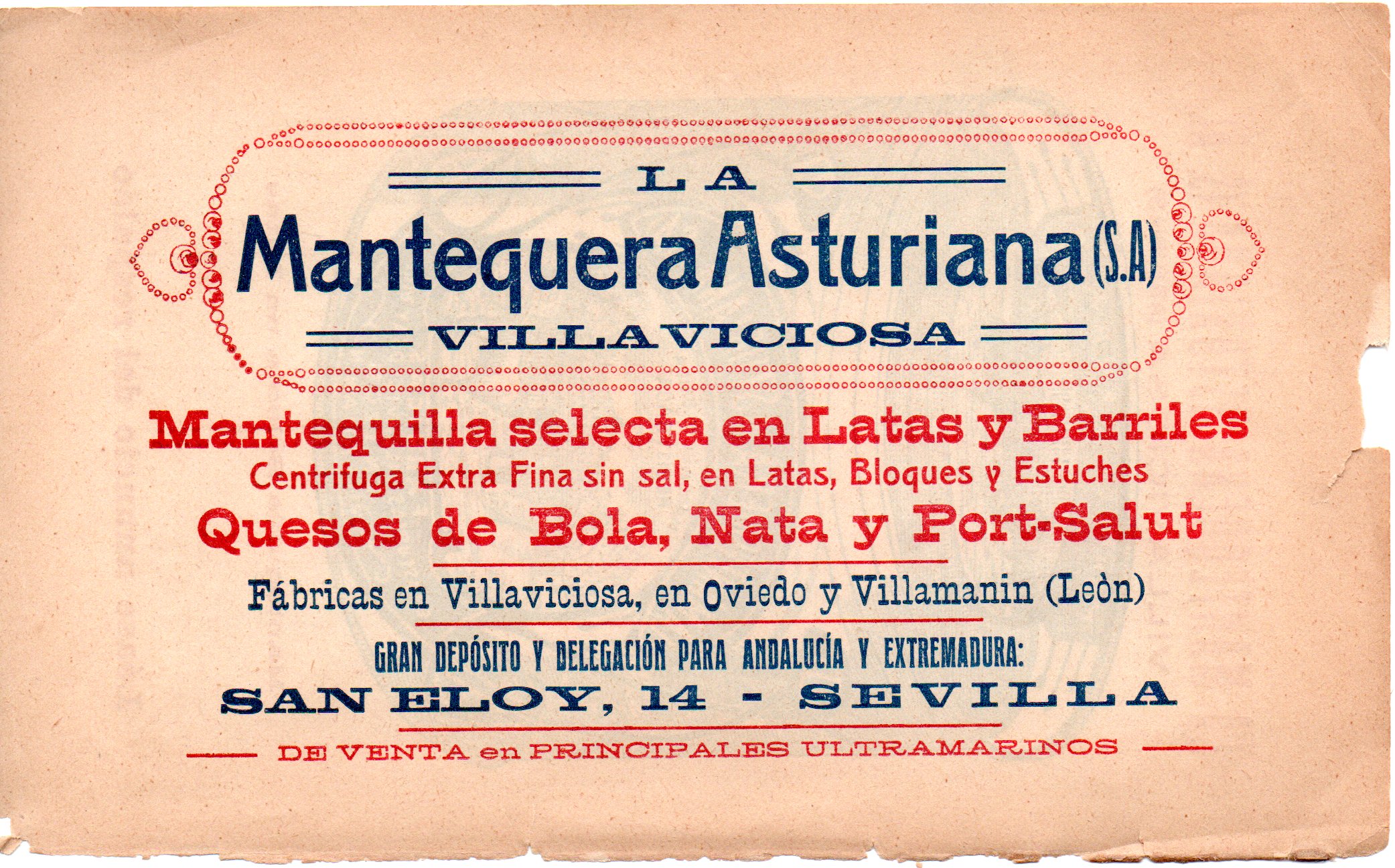 C023Hoja libro. PUBLICIDAD LA MANTEQUERA ASTURIANA 11×18 cm. Procedente de una publicación. Anvereso y reverso con publicidad de la mismas/dS/D