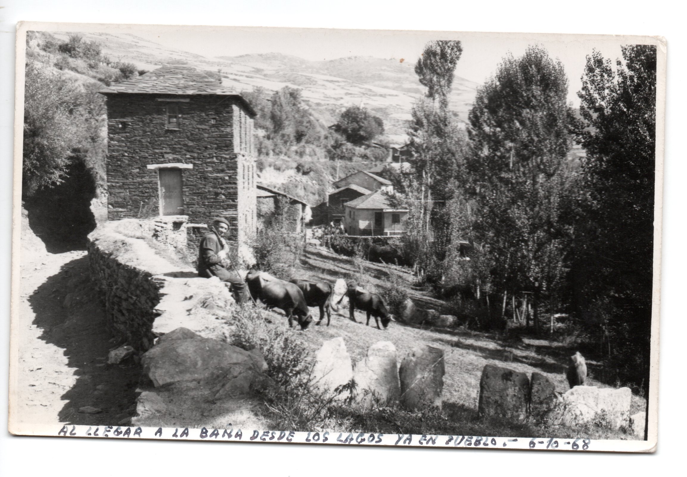 C024FOTOGRAFIA ORIGINAL. PAISANO CON VACAS EN EL PUEBLO DE LA BAÑA. Escrita al pie: «Al llegar a La Baña desde Los Lagos ya en el pueblo.- 6-10-68. 1968_06_10La Baña