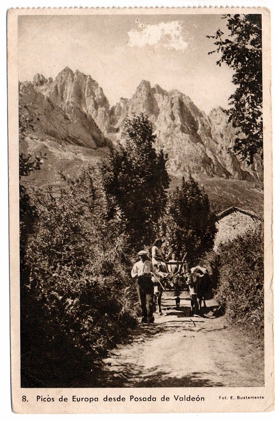 C033POSTAL CIRCULADA. PICOS DE EUROPA DESDE POSADA DE VALDEON. Fot. E.Bustamante. Ed. Huecograbado Rieusset, s.a. Barcelona. Enviada a Bruselas.s/dValdeón (León)
