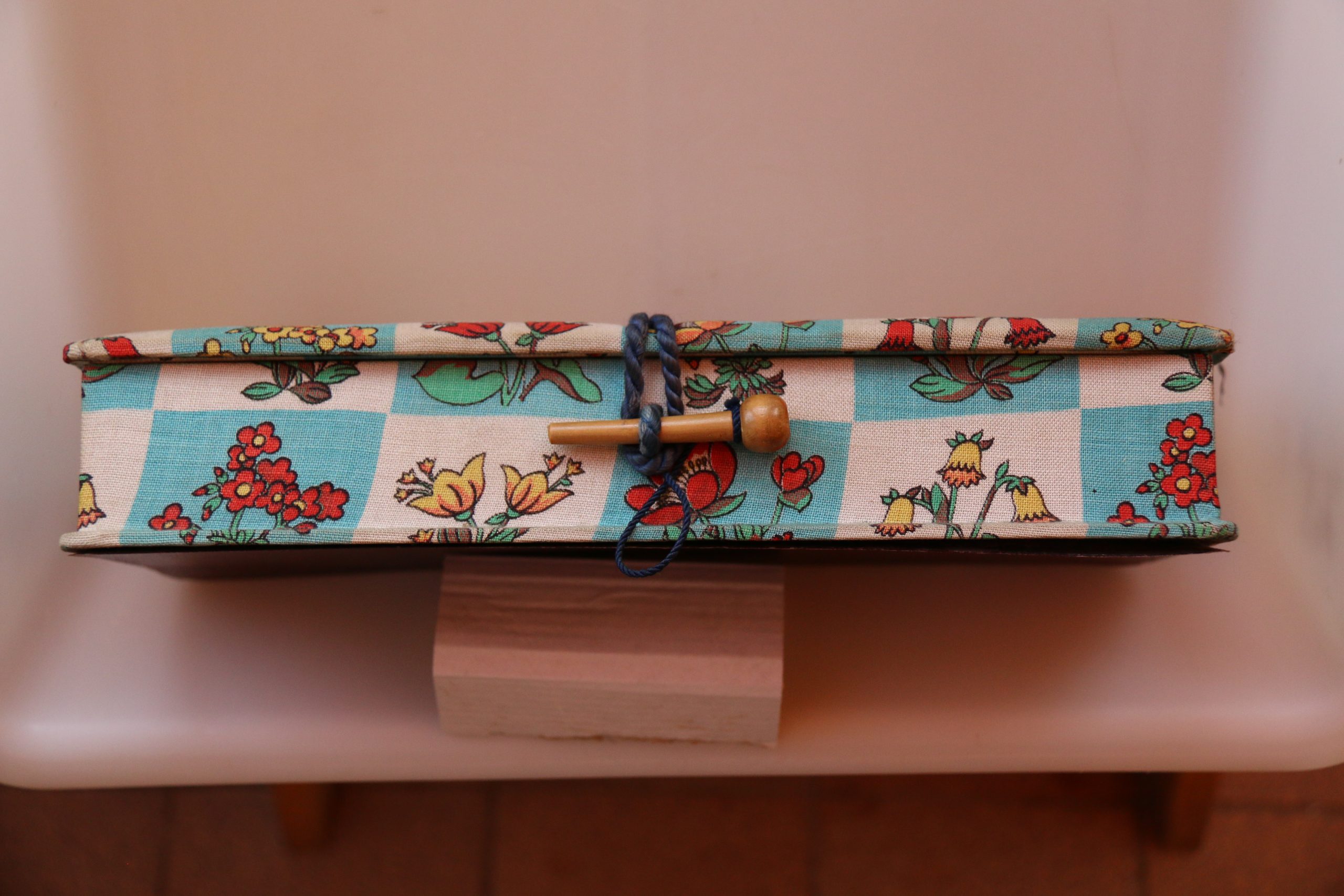 C037CAJA DE CARTON FORRADA EN TELA. MANTEQUERIAS LEONESAS. POSIBLE TRATADO ARTESANAL.forrada con telas/dMadrid