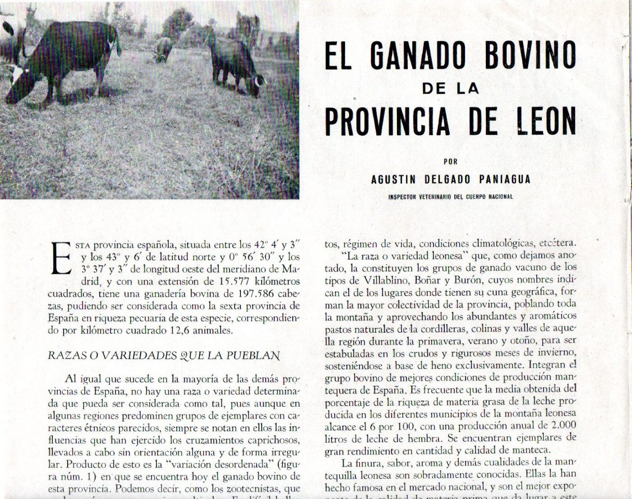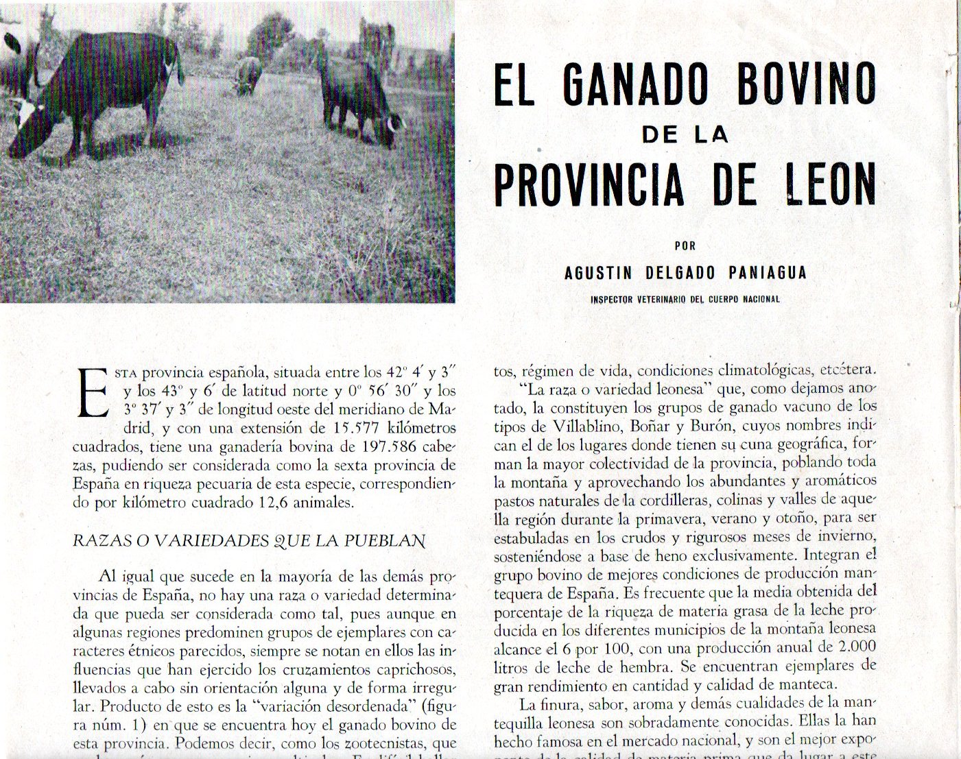 C043Recorte prensa, EL GANADO BOVINO EN LA PROVINCIA DE LÉON. Rev. Ganadería. Agustín delgado Paniagua. 6 pags.1945_MayoLeón