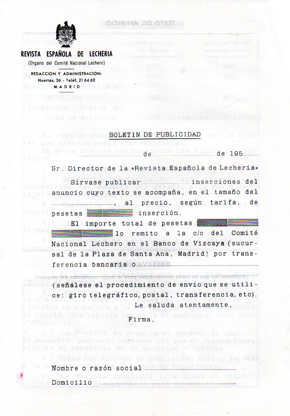 C048Folleto, BOLETIN DE PUBLICIDAD. REVISTA ESPAÑOLA DE LECHERIA. Años 50.1950 circaMadrid